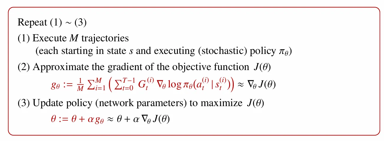 is approximated using the sample mean, and the update is performed in an online manner β that is, the policy is updated immediately using data obtained from each 1-step interaction.