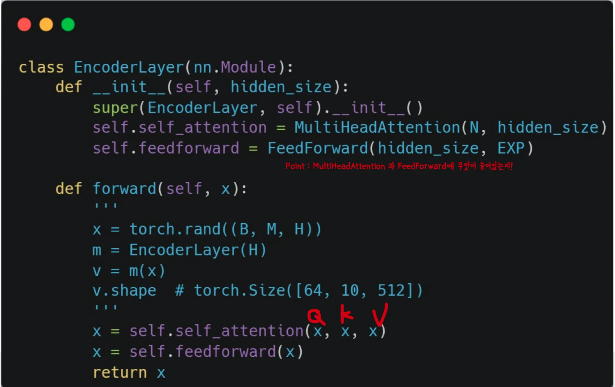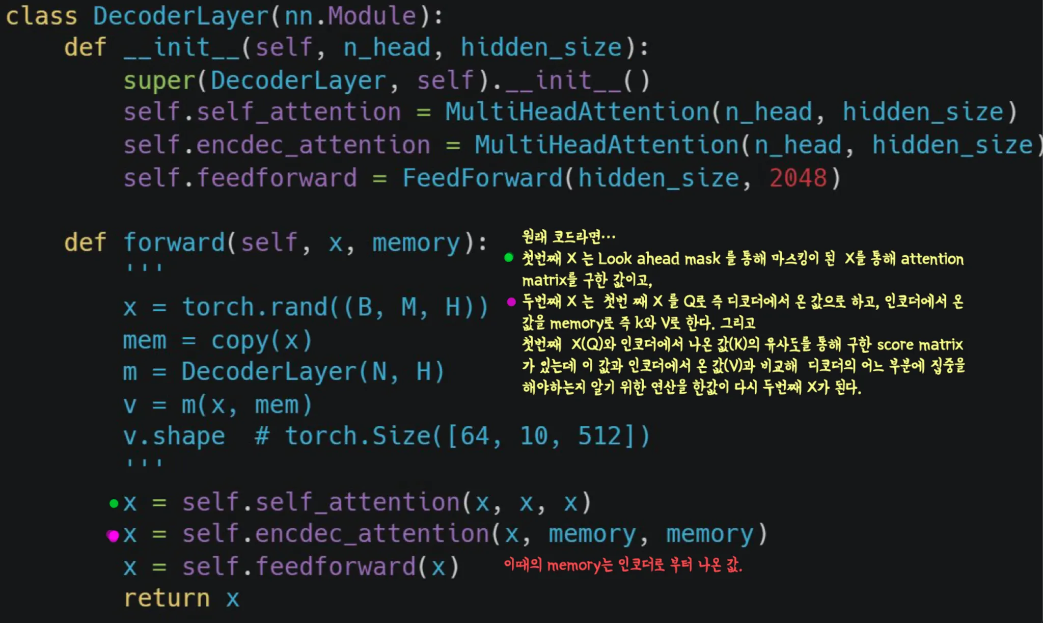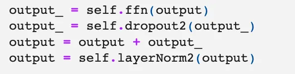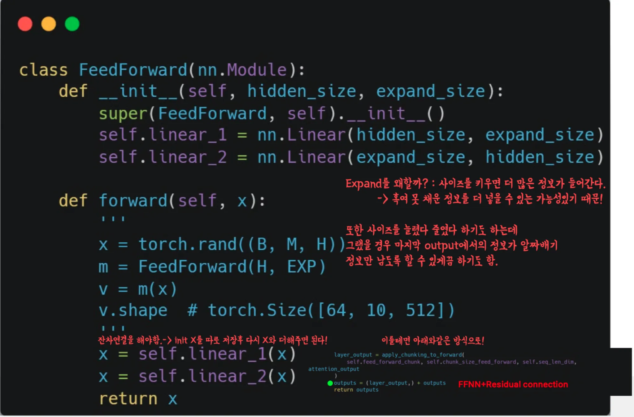 # 앞서 나온 FFNN과는 조금 다른 이름으로 적혀있지만 누락된 정규화와 마스킹이 포함되어있습니다. 또한 Multi head 에 layer 하나를 더 쌓는 것도 포함되어있는 코드입니다.