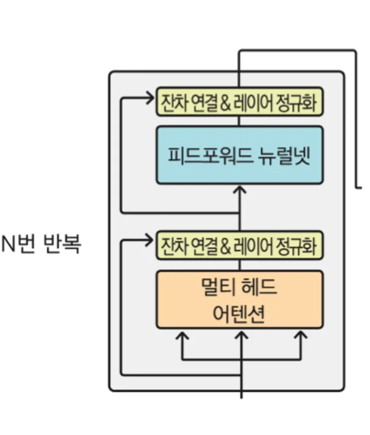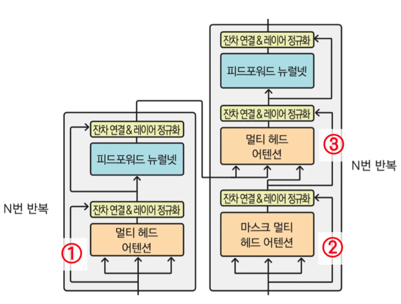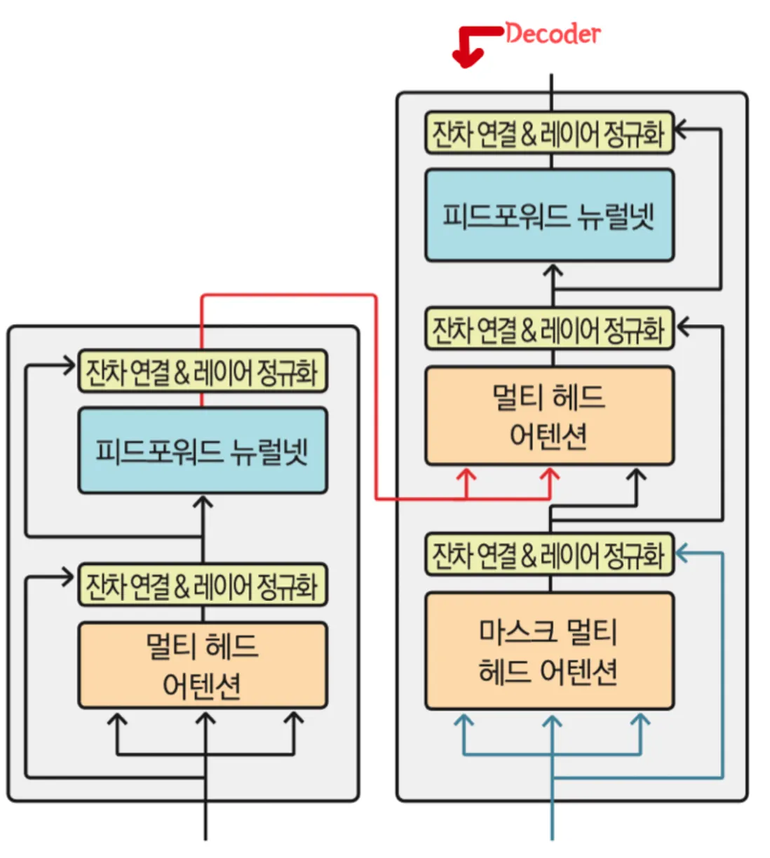 누락된 Masking, 잔차연결 과 Multihead 에서 layer 하나 더 쌓는 과정 정도만…
