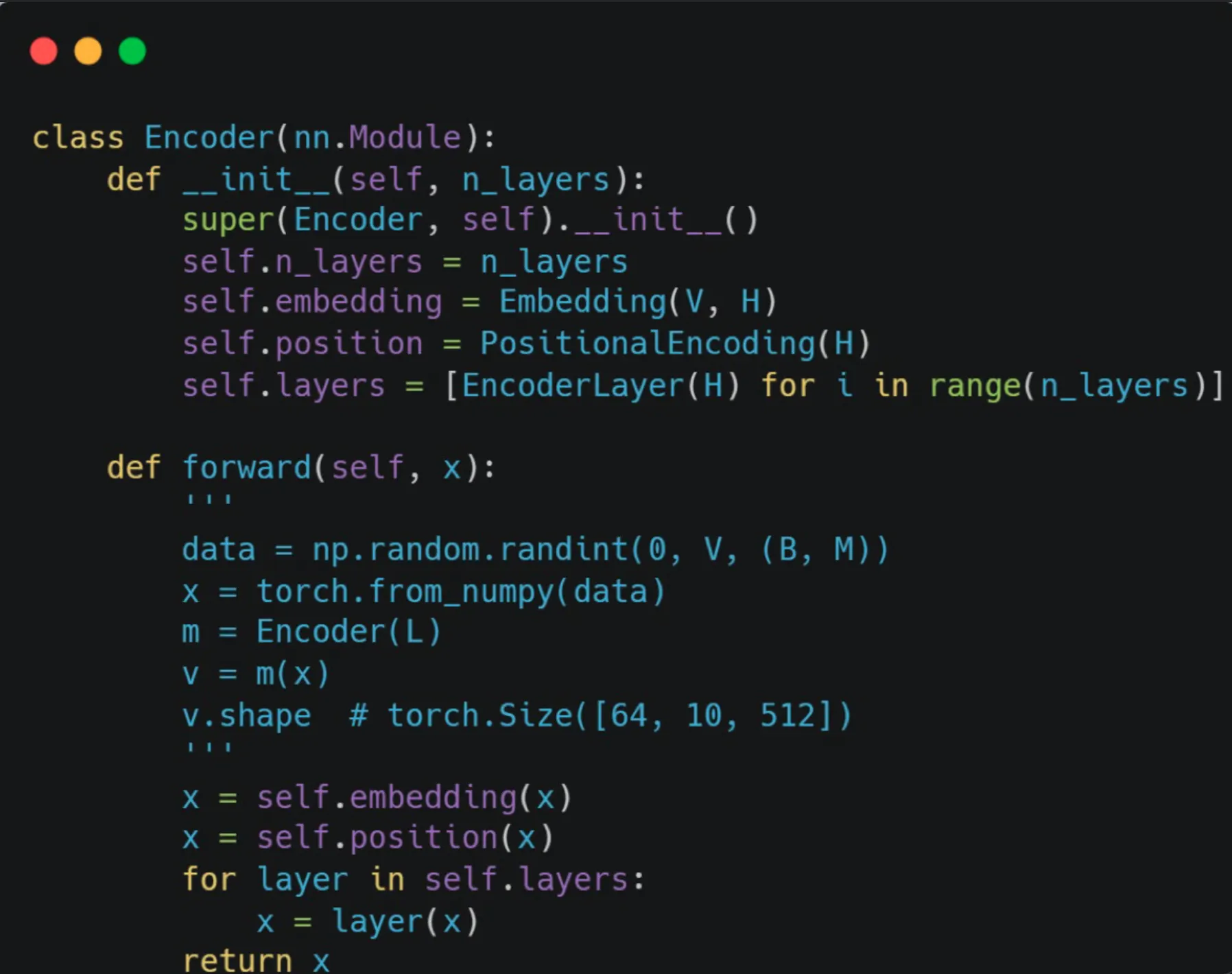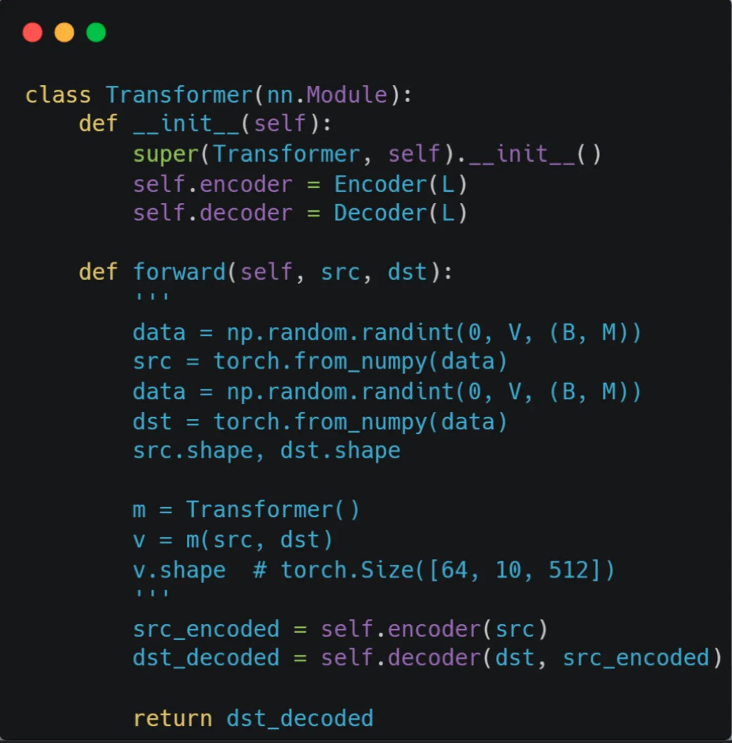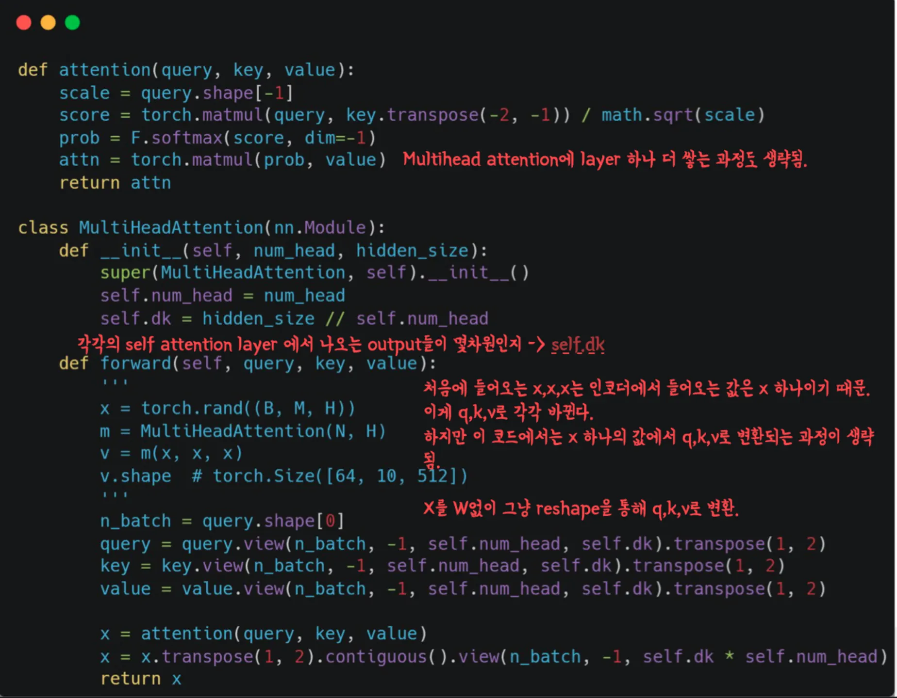 나머지 코드는 transformer를 기반으로 하므로 틀은 차이점에서 언급한 부분을 제외하면 크게 다르지 않다.