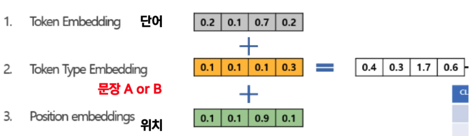 Bert의 Embedding → 문장을 사용하기 때문에 Embedding 이 다른 모델과는 차이가 있다.