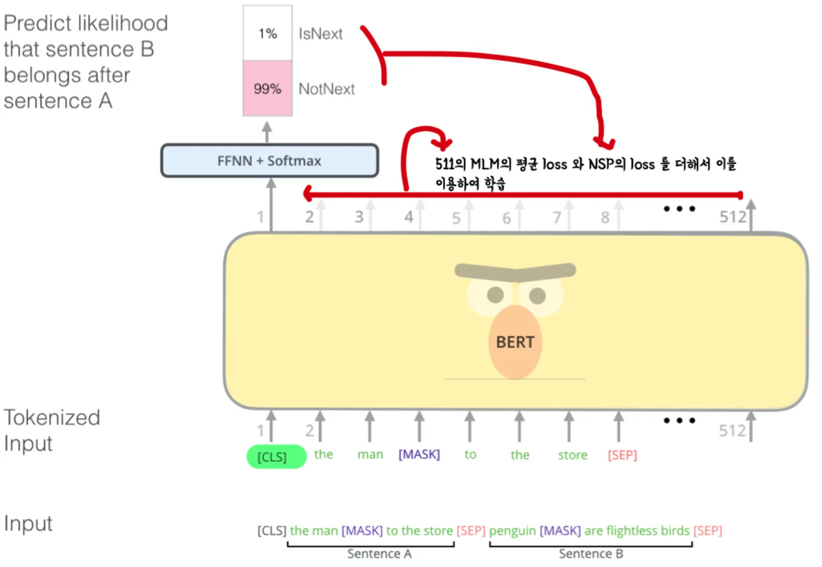 Points : Upstream task에서 MLM(Masked Language Model)과 NSP(Next Sentence Prediction)로 학습하고 Downstream task에서 목적에 맞게 Fine tuning한다!