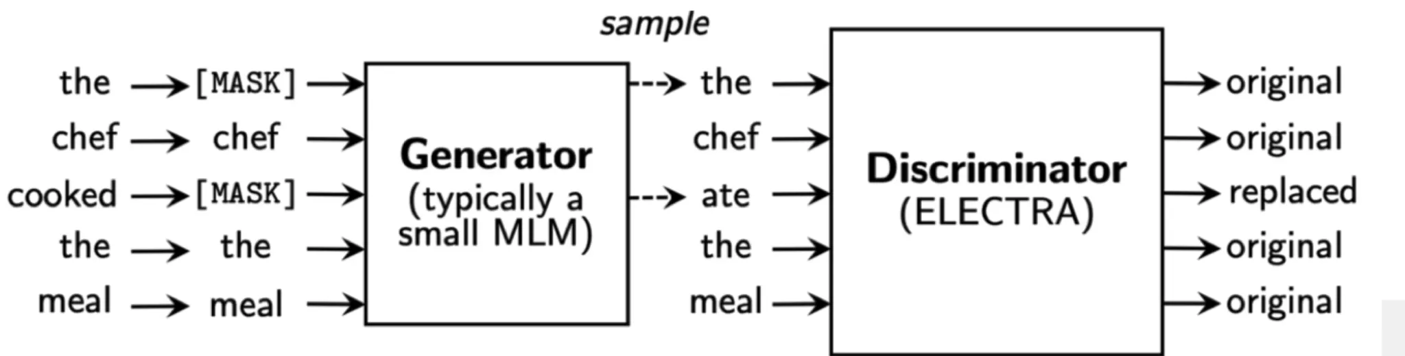 오히려 GAN과 유사함. [mask]를 다른 단어로 바꾸고 이 단어가 원래 있는 단어인지 교체된 단어인지를 확인함.