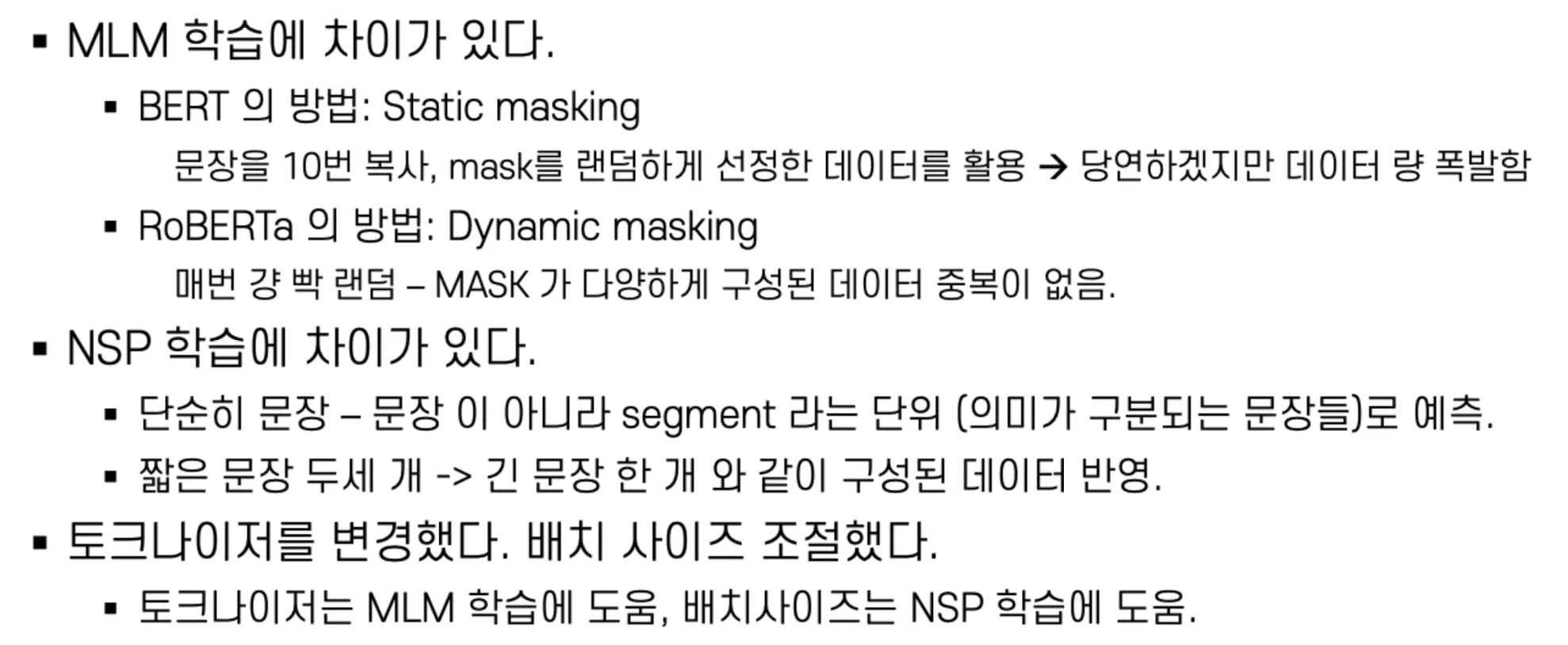 구조적으로 BERT와 완벽히 동일하지만 최적화시킨 모델.