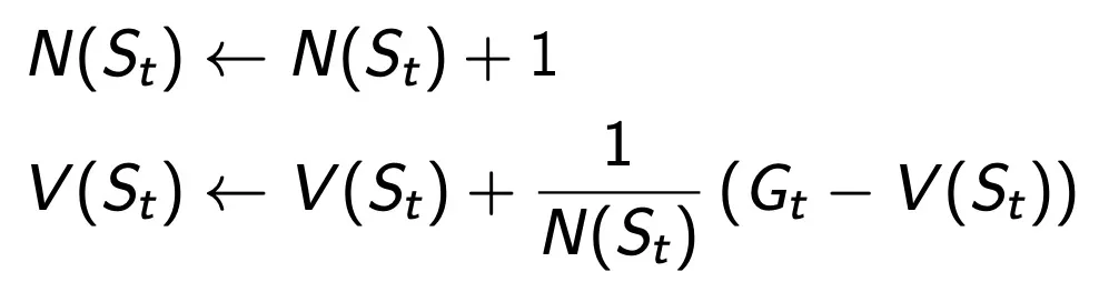 V(s)๋ฅผ ๋ฐฉ๋ฌธํ ๋๋ง๋ค Incremental Mean์ ํตํด updateํ๋ค.