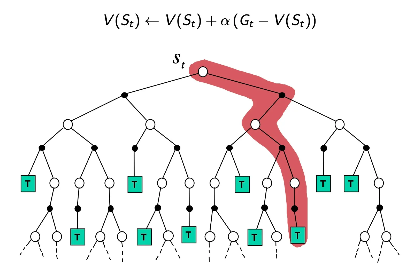 Like MC, can only be computed from complete episodes (TD(0)์ ์ฅ์ ์ด ์ฌ๋ผ์ง)