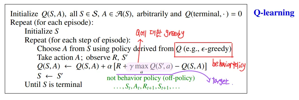 Target policy는 Q에 대한 , behavior policy는 Q에 대한 (Off policy)
